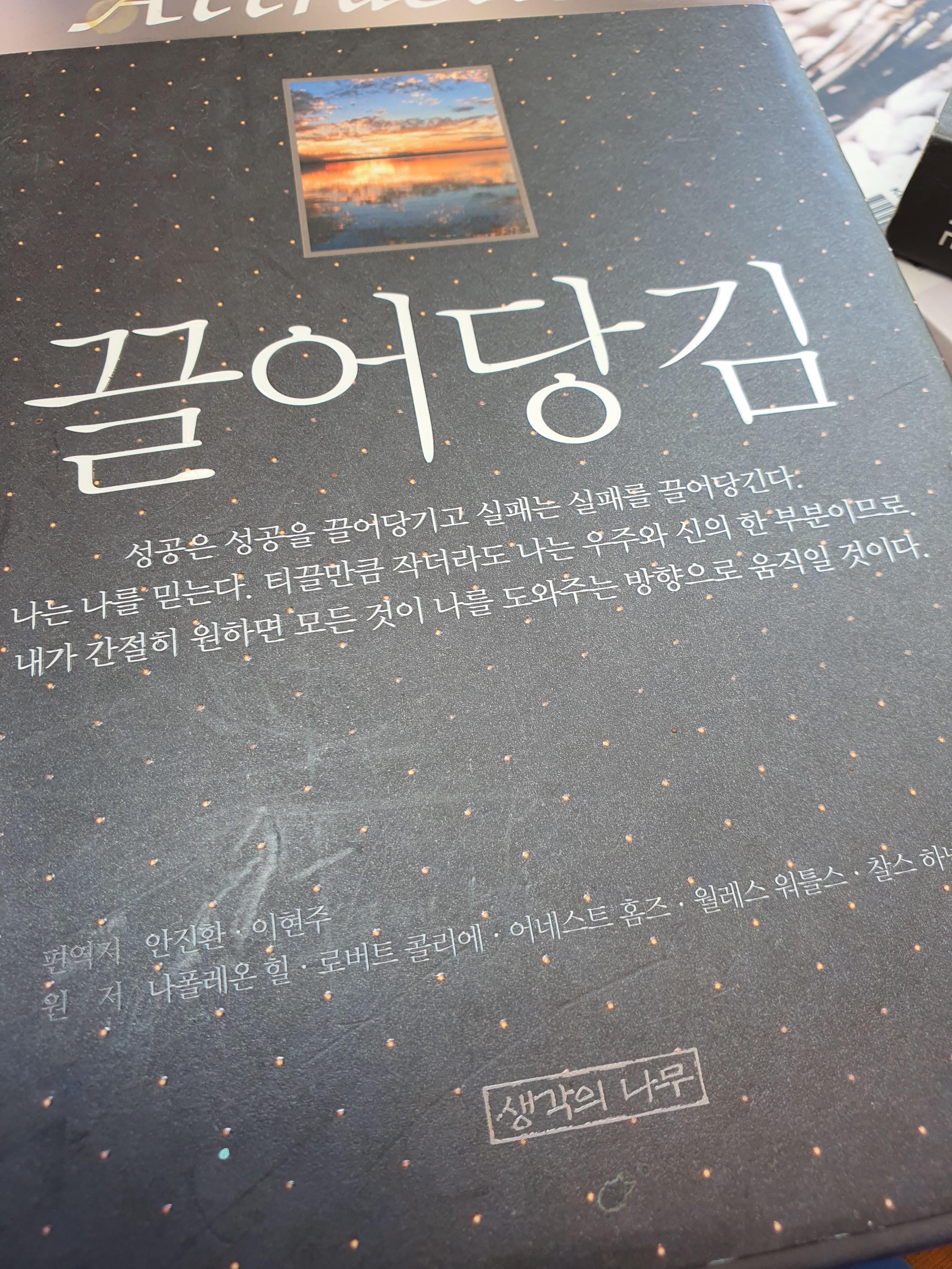 저 책에서 보이듯 "끌어당김"이라는 문구가 제 눈에 들어왔을때, 한참동안 저 문구를 보게 되었네요. 그리고 그 밑에 문구를 읽었을때 제가 고민하고 있는 문구들이라 공감이 갔습니다. 누구나 "성공"이라는걸 하고 싶은데, 참으로 인생에서 성공이라는걸 하기는 쉽지 않은듯합니다. 성공이라는 잣대의 기준이 사람마다 다르기 때문인듯한데, 자본주의사회에서 살고있는 우리들은 "금전적인 경제적인 부"를 가지고 성공의 잣대를 삼는경우가 많은듯합니다. 저또한 그렇게 살고있는듯하구요.