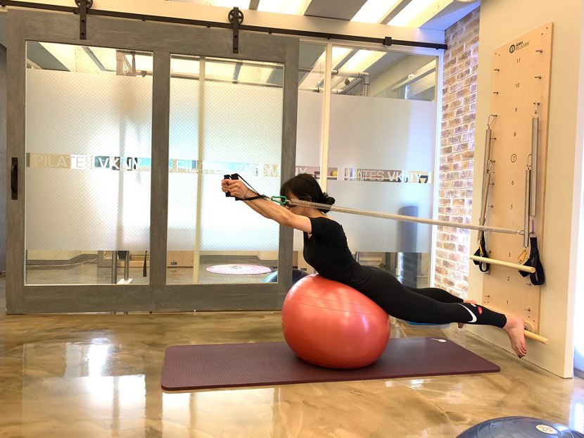 오늘은 필라테스기구인 스프링 보드와 소도구인 짐볼을 이용하여 척추기립근을 강화시킴과 동시에