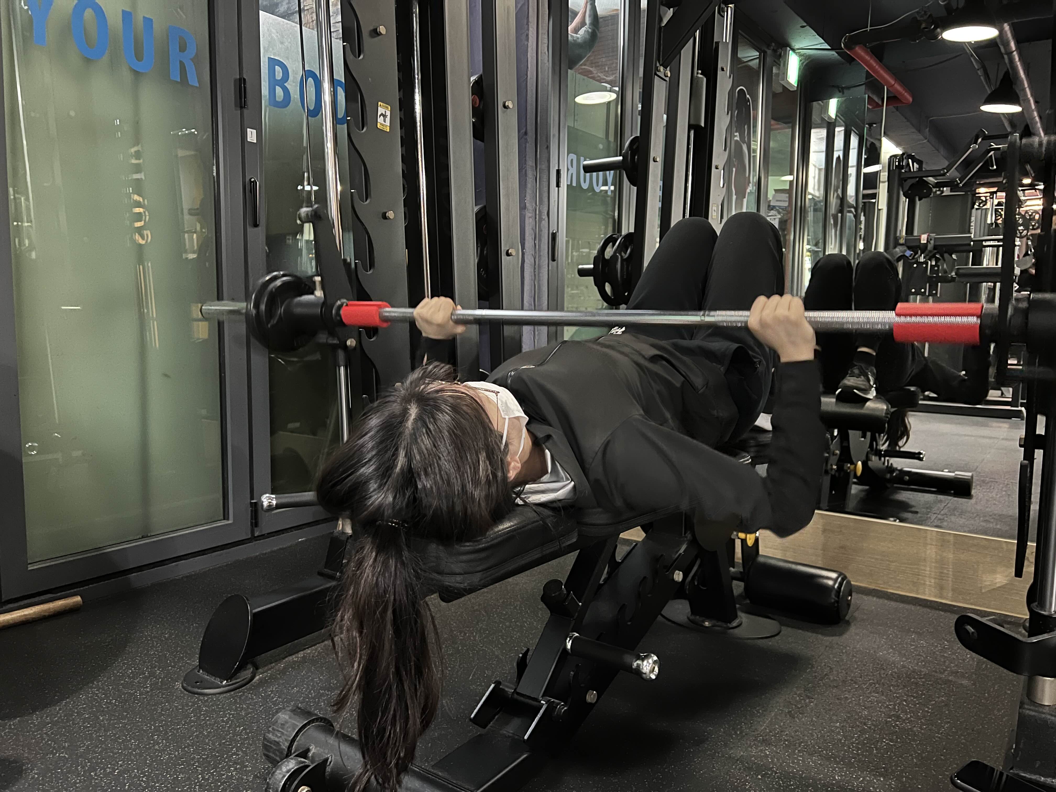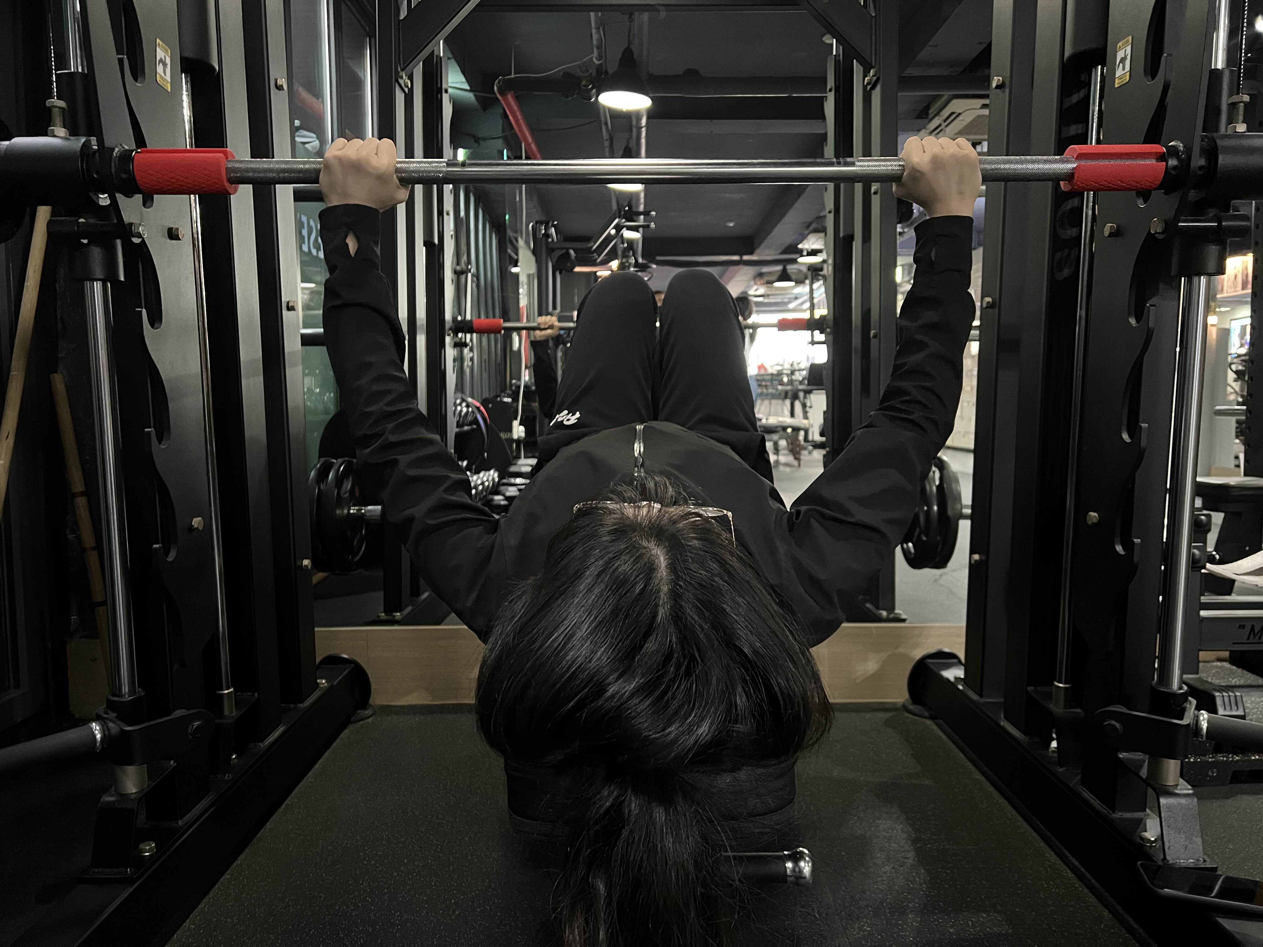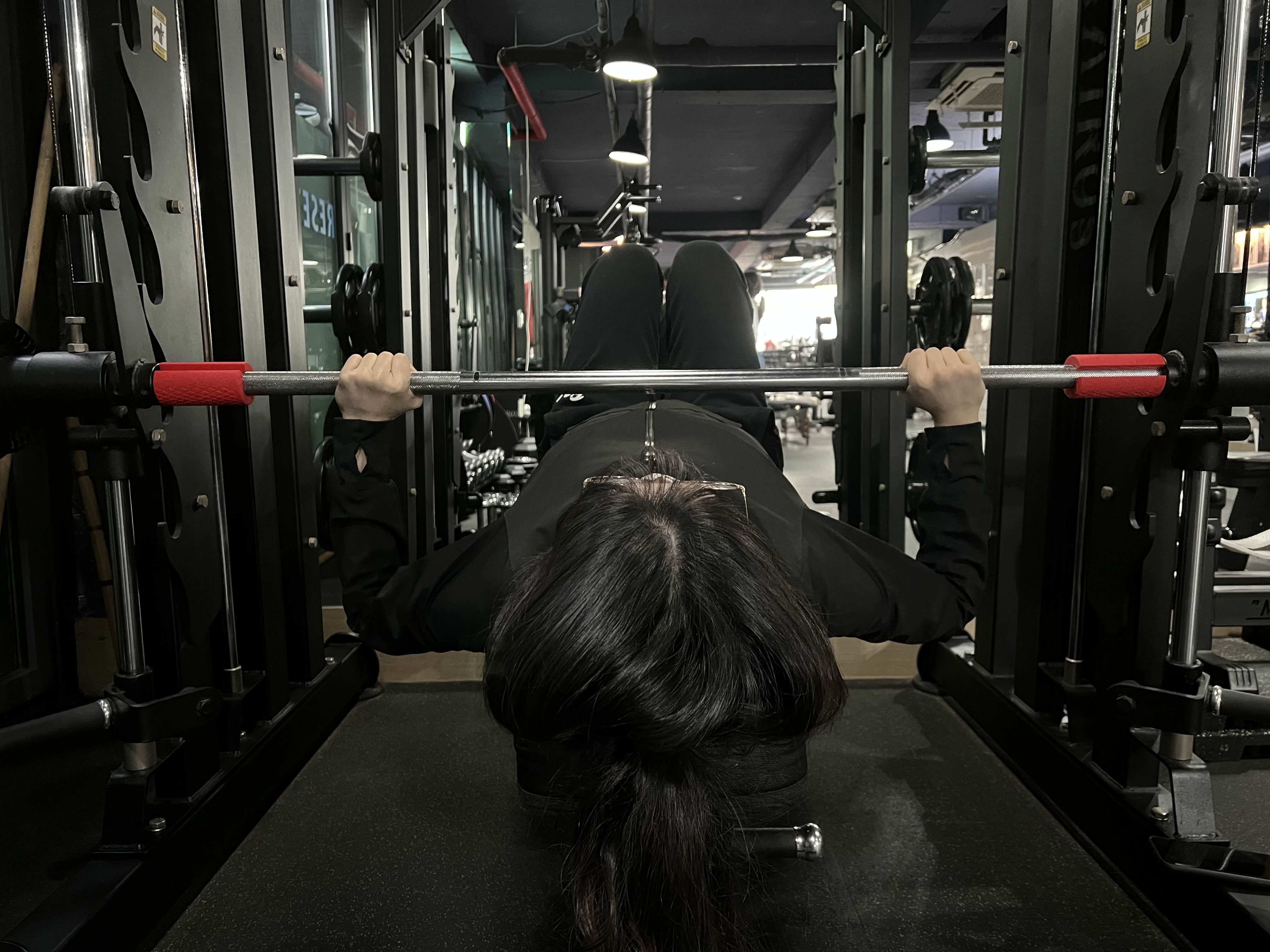 이번주 첫운동은~ 스미스머신을 이용한 플랫벤치 프레스! 가슴운동이 되겠습니다~