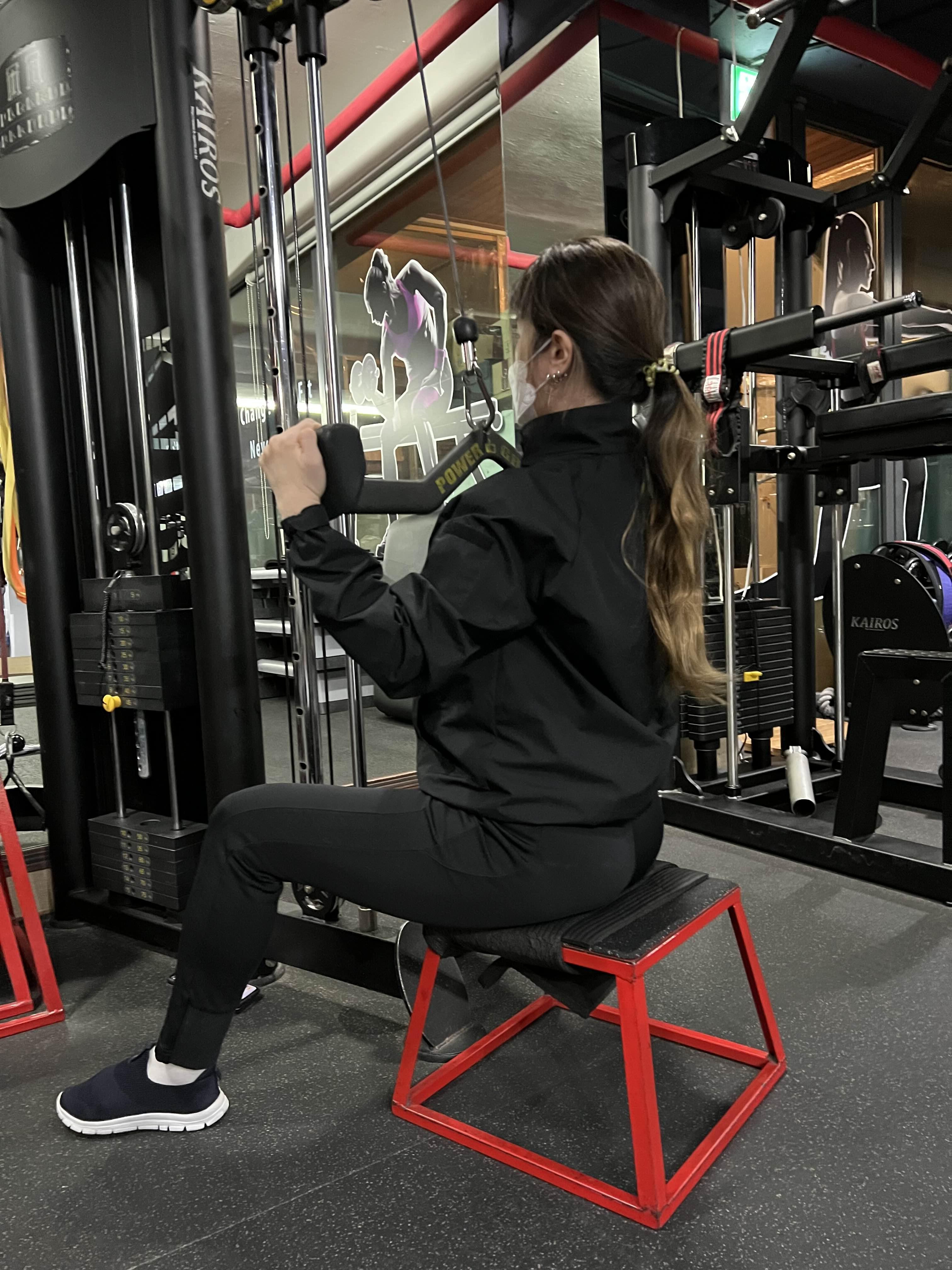 케이블 머신을 이용하여 동작을 보여드릴 건데요.