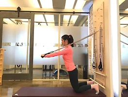 필라테스비키니(PILATESVKNY) (441) 썸네일형 리스트형 체어에서 등근육과 둔근힘 강화 동작 안녕하세요~ 합정필라테스 기구전문 스튜디오 필라테스비키니(PILATES VKNY)입니다! 남녀노소 할 것 없이 밉게 튀어 나온 엉밑살이나 속옷라인 사이로 튀어나오는 살들은 정말 미울 수 밖에 없는데요~ 그런 고민을 없애 줄 이쁜 뒷라인을 만들어줄 이 동작! 같이 해보실까요? 체어에서 등근육과 둔근힘 강화 동작 먼저 체어에 발볼을 페달에 놓고 뒷꿈치를 붙이고 힐을 신은 것처럼 뒷꿈치는 들고 고관절을 열고 앉습니다 그런 다음 손으로 체어 뒤 쪽 양 끝을 잡고 팔을 길게 펴서 체중을 지탱합니다. 이 때 손목이 꺾이지 않게 감싸서 잡아 주세요 자 이제 골반을 들어올려 수평을 유지하고 상체가 주저앉지 않게 둔근의 힘을 풀지 않습니다. 시작 자세부터 몸 전체 긴장감을 풀지 않는게 중요합니다! 마시면서 준비 내쉬면서.. 배럴에서 하는 외전근 필라테스운동 안녕하세요. 합정필라테스 전문 스튜디오 필라테스비키니(PILATES VKNY)입니다! 날이 추워지면서 어깨, 골반, 무릎등이 더 시리거나 아픈경우가 많은데요~ 특히 요즘 골반에서 움직일 때 마다 소리가 난다거나 통증을 호소하시는 분들이 많으세요 골반이 아픈 이유 중 허리를 연결하는 인대 그리고 골반과 다리를 연결하는 인대 근육들이 원인이 될 수 있기 때문에 오늘은 골반, 중둔근(엉덩이),외전근(다리) 등에 도움이 되는 동작을 알려드릴게요 배럴에서 하는 외전근 필라테스운동 배럴에서 측면을 바라보고 탑 부분에 골반을 댑니다 한 쪽 손은 래더 위에서 두번째 부분에 잡고 팔꿈치는 신전시켜주세요 반대 손은 머리뒤에 놓습니다 탑 부분에 닿은 다리는 앞으로 양반다리를 해주시고 반대편 다리는 옆으로 뻗어주세요 발을 살.. 어깨와 복부를 한번에 강화시키는 수파인 코렉터 운동 안녕하세요~ 합정 기구필라테스 전문스튜디오 필라테스비키니(PILATES VKNY)입니다^^ 평상시 일할때 정적으로 같은 자세로만 모니터만 보고있어서 항상 어깨가 뻐근하지 않으신가요? 그리고 갑자기 무거운 물건을 들때나 어깨를 돌릴때 가동범위가 작거나 특히 어느 부분에서 시큰시큰 무리가 기시는 분들 있으실거예요~ 그래서 준비한 오늘 운동은 어깨 관절을 유연하게함과 동시에 복부힘도 길러주는 동작입니다^^ 어깨와 복부를 한번에 강화시키는 수파인 코렉터 운동 먼저 캐딜락 위에 슈파인 코렉터를 놓아줍니다. 그런 다음 두 다리는 무릎을 굽혀 골반너비로 벌리고, 스텝 위에 골반을 바닥과 수직으로 앉습니다. 허리는(척추) 앞을 고르게 굴곡 된 상태로 손바닥을 마주 보게 하여 어깨높이로 들어올립니다. 자 이제 마시면서 .. 코어와 복부강화를 동시에 하는 필라테스 안녕하세요~ 합정 기구필라테스 전문스튜디오 필라테스비키니(PILATES VKNY)입니다! 요즘 옷이 두꺼워지면서 몸에 긴장을 풀고 다니는 분들이 많으시죠? 특히, 복부에 힘을 풀고 다녀 음식을 먹어서 나온 배 그대로, 또는 체형이 틀어져서 쳐져있는 배 그대로 방치해두는 경우가 있는데요 오늘은 그런 분들을 위해 온 몸에 긴장도 되고 특히 복부근육을 강화시킬 동작을 준비했습니다 동작은 간단하지만 몸 전체에 긴장을 풀면 안되는 운동이니 집중해주세요! 코어와 복부강화를 동시에 하는 필라테스운동[Scissors 동작] 배럴에서 래더 반대 쪽을 바라보고 탑 부분에 앉습니다. 두 손은 래더 가장 위부분을 잡고 가슴을 펴며 흉추는 길게 늘려줍니다. 요추는 살짝 굴곡하여 다리를 모아 위로 들어주고 복부근육을 수축해줍니다.. 여성분들의 이쁜가슴근육 만들기 위한 필라테스 안녕하세요~ 합정필라테스 기구 전문 스튜디오 필라테스 비키니(PILATES VKNY)입니다! 많은 여성분들이 다이어트나 운동을 하게되시면 가슴부터 살이 빠지고 볼륨이 줄어든다고 많이들 속상해 하시는데요~ 가슴에 붙어있는 지방이 빠진다고 운동을 안할 수는 없겠죠? 하지만, 오늘 동작을 통해서 쳐진 가슴을 끌어올려주고탄력있게 만들어주는 방법을 알려드릴게요 여성분들의 이쁜가슴근육 만들기 위한 필라테스 먼저 스프링 보드를 등지고 무릎을 바닥에 대어주세요. 발바닥은 스프링 보드에 대주시고 양 손은 스트랩을 잡아줍니다. 어깨, 골반, 무릎을 사선으로 만들어 주세요. 팔을 구부려 'ㄴ' 자로 만들어 주시고 마시면서 준비해주세요. 내쉬는 숨에 가슴에 힘을 주며 팔을 앞으로 쭉 뻗어서 밀어주세요. 복부는 같이 수축하여 .. 캐딜락을 이용한 직장인들의 건강한 척추만들기 운동 안녕하세요. 합정필라테스 전문 스튜디오 필라테스 비키니(PILATES VKNY)입니다. 요즘같이 추운날씨면 몸을 움츠리게 다니게 되고,반복되는 일상적인 업무로 인해서 많은 분들이 몸이 굽어보이는 자세를 많이 가지게 됩니다. 그래서 필라테스비키니에서 준비한 오늘의 운동은스프링보드 또는 캐딜락에서 할 수 있는 "롤 다운 바"를 이용한 운동법입니다. 이 운동은 굳은 척추를 풀어주고동시에 등 근육도 수축할 수 있는 운동이니장시간 앉아서 일하시는 직장인들에게 추천드립니다. 캐딜락을 이용한 직장인들의 건강한 척추만들기 운동법 먼저 캐딜락에서 롤다운