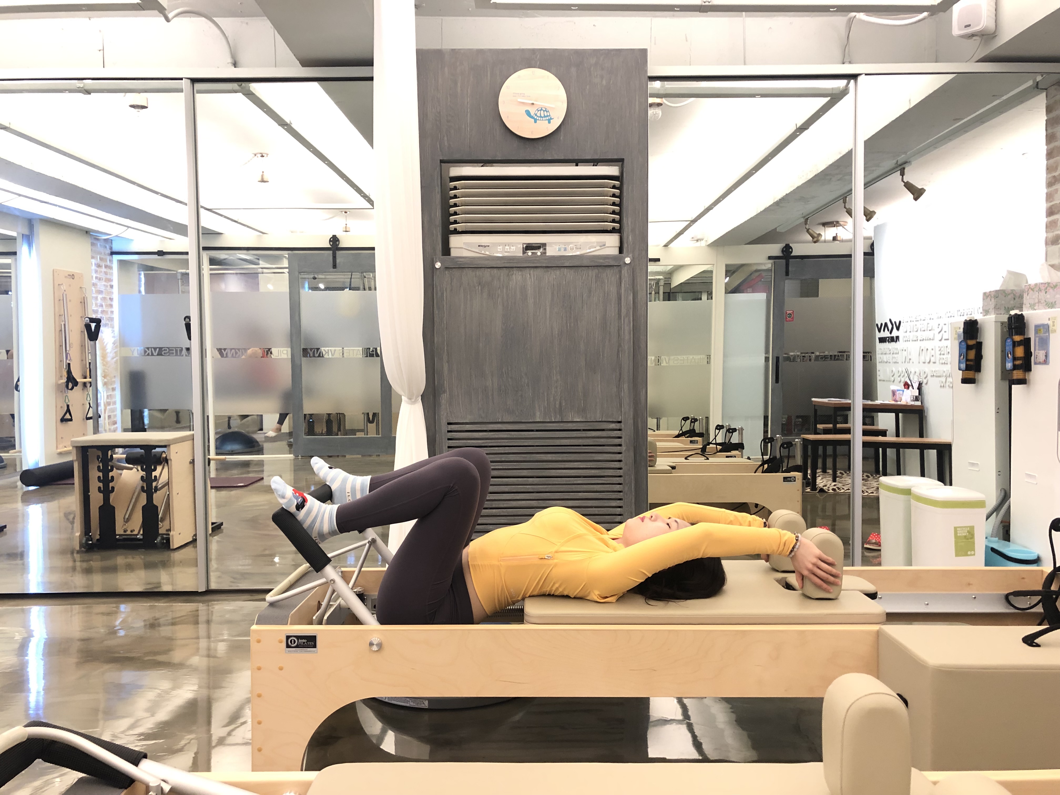 리포머에서 발은 와이드 포지션으로 풋바 위에 올려놓을게요.