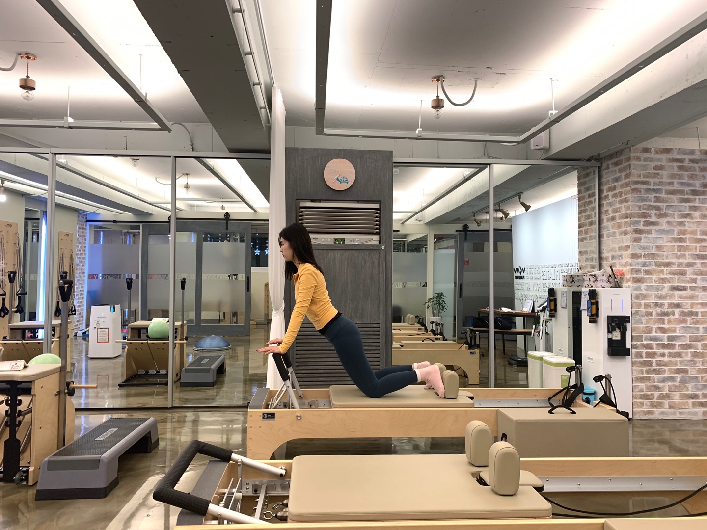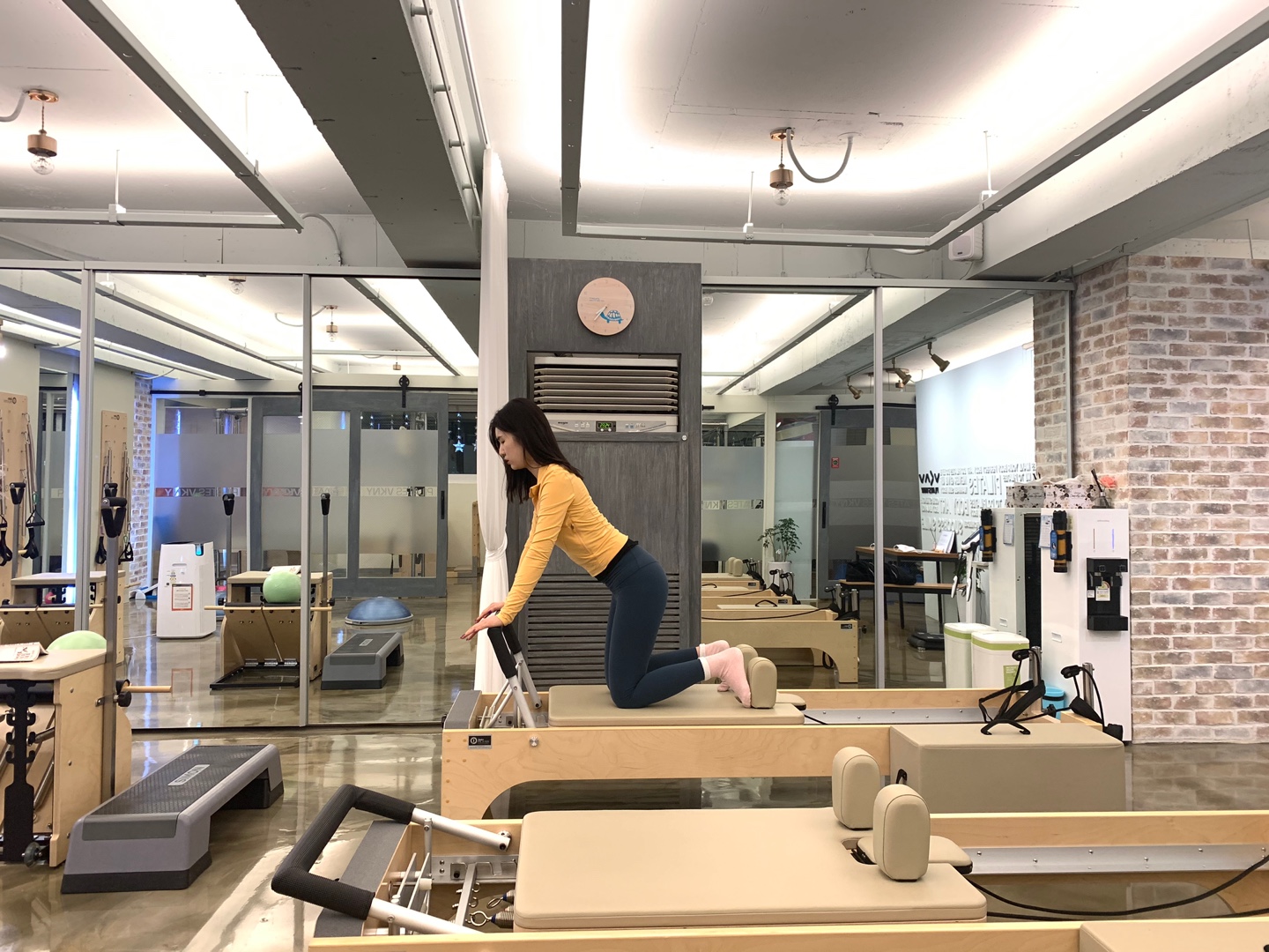 필라테스 입문자분들께 유용한 운동 중 리포머를 이용한 다운 스트레칭