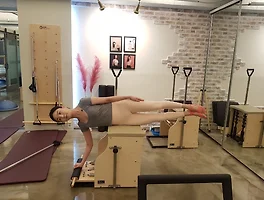 필라테스 (193) 썸네일형 리스트형 체어에서 할 수 있는 탄탄한 허벅지 라인 만들기 운동 안녕하세요. 합정 기구필라테스 전문 스튜디오 필라테스비키니(PILATES VKNY)입니다. 무더운 여름, 남여 할 것 없이 반바지가 절실한 요즘! 하지만 허벅지 뒤에 셀룰라이트가 울퉁불퉁 나와서 고민이신분들 있으실거예요. 그런분들을 위해 준비한 오늘의 운동! 허벅지 라인을 탄탄하게 만드는 동시에 다리 전체의 힘도 기를 수 있는 동작입니다. 체어에서 할 수 있는 탄탄한 허벅지 라인 만들기 운동 먼저, 페달 앞 쪽에 박스를 놓고 옆을 바라보고 섭니다. 그런 다음 다리는 평행하게 유지 하고 한쪽 발은 페달에 놓고 다른 쪽의 발은 박스에 놓습니다. 무게중심이 앞이나 뒤로 쏠리지 않게 수직으로 똑바로 서야 하고 어깨가 말리지 않게 가슴을 앞으로 내밀어 정면을 바라보고, 숨 마시고 준비합니다! 내쉬면서 페달쪽 다리.. 매끈하고 탄탄한 다리라인 만들기 필라테스 안녕하세요~ 합정 기구필라테스 전문스튜디오 필라테스비키니(PILATES VKNY)입니다^^ 바야흐로 너무 무더운 여름! 반바지나 짧은 치마를 입으면 울퉁불퉁 앞 뒤에 셀룰라이트가 미우신 분들 많으실거 같아요~ 그리고 다리가 평상시 저리거나 하중에 피가 쏠려서 혈액 순환이 안되시는 분들도 좋은 운동! 그 와 동시에 탄탄한 다리라인도 만드는 동작 같이 해보실까요? 매끈하고 탄탄한 다리라인 만들기 필라테스 먼제 래더의 핸들을 잡고 배꼽을 베럴 정점에 두어서 다리는 평행하게 둔근의 힘으로 올려서 준비합니다. 어깨가 과긴장 되지 않아야 하고 날개뼈가 몸에서 떨어 지지않게 가슴을 천장쪽으로 밀어내주는것이 중요합니다~ 복부의 힘이 풀리면 허리가 다칠 수 있으니 복부의 긴장감도 잊지마세요! 자 이제 마시면서 그대로 다.. O다리와 X다리에 좋은 필라테스운동 안녕하세요~ 합정 기구필라테스 전문스튜디오 필라테스비키니(PILATES VKNY)입니다^^ 요즘 잘못된 자세로 서있거나 앉아 있는분들을 많이 볼 수 있는데요 이런분들 중 다리가 일자가 아닌 O자나,X자로 틀어진 분들이 많습니다 그래서 필라테스비키니에서는 다리가 틀어져 있는 분들을 위해 체어를 이용해서 할 수 있는 다리교정 동작을 알려드리려 합니다 이 동작은 평소에 발목이 잘 다치시는 분들을 위한 발목 강화에도 도움되는 동작이니 많이들 따라해주세요^^ O다리와 X다리에 좋은 필라테스운동 옆 쪽을 바라보고 선 다음 손은 양 사이드로 길게 뻗습니다 어깨를 안정화하고 체어랑 가까운쪽 다리는 고관절 외회전해서 페달 위에 올려 놓습니다 나머지 다리는 고관절 외회전해서 몸을 지탱합니다 마시면서 준비해주세요 내쉬면서 .. 현대인의 거북목 증후군을 탈출하는 필라테스운동 안녕하세요~ 합정 필라테스 기구 전문 스튜디오 필라테스 비키니(PILATES VKNY)입니다! 평소에 컴퓨터 작업을 하신다거나 운전을 오래하시는 분들이 거북목이 되어 있으신데요 그 외에 지하철이나 버스에서도 많은 분들이 스마트폰을 보면서 다니는게 습관이 되어 현대인들은 자신도 모르게 거북목이 되어 있으실 거에요 이런 분들을 위해 리포머에서 할 수 있는 동작을 알려드릴게요 먼저 도르래를 바라보고 캐리지 위에 닐링 자세를 취합니다 손으로 스트랩을 잡고 손바닥은 뒤로 향합니다 둔부근육에 힘을 줘 고관절 굴곡근을 펴주고 가슴도 넓게 펴주세요 마시면서 준비하세요 내쉬면서 자세를 유지하며 스트랩을 뒤로 당깁니다 어깨가 말려있지 않도록 오픈해주세요 팔 힘이 아닌 어깨 뒤쪽, 등 부분에 힘이 들어가도록 합니다 견갑골 .. 등과 옆구리살을 한번에 타파하는 동작! 안녕하세요~ 합정 필라테스 기구 전문 스튜디오 필라테스 비키니(PILATES VKNY)입니다. 옷은 점점 가벼워 지는데, 등과 옆구리에 붙는 살들은 점점 무거워지는 분들 계실거예요~ 유난히 등에 붙는 살은 잘 안빠지고, 울퉁불퉁 튀어나오기 마련입니다. 마찬가지로 옆구리 살도 눈치없이 나와서 신경쓰이는 지금! 이동작 하나로 한번에 정리해보실까요? 먼저 머리가 페달 쪽으로 가도록 체어 위에 옆 골반 뼈를 대고 측면으로 눕습니다. 머리부터 발 끝까지 하나의 긴 일직선이 되도록 만듭니다. 다리는 곧게 펴서 평행하게 붙이고, 지지하는 팔은 펴줍니다. 손과 어깨가 일직선이 되도록 하며 다른 팔은 다리에 길게 놓습니다. 머리가 밑으로 떨어지지 않게 주의해 주세요~ 시작자세부터 힘든 동작인 만큼 자세를 안정적으로 준비.. 상완삼두근 강화시키는 필라테스운동 안녕하세요~ 합정필라테스 기구전문 스튜디오 필라테스비키니(PILATES VKNY)입니다! 많은 여성들이 상체근력, 특히 팔의 근력이 부족하여 조금만 상체 운동을 해도 많이 힘들어하시는데요 오늘 알려드릴 동작은 팔뚝을 흔들었을 때 출렁이는 팔뚝살을 탄탄하게 만들어주고 동시에 굽은 어깨와 등도 펴주는 효과가 있으니 모두 집중해주세요 체어를 등지고 박스 위에 앉습니다 팔꿈치를 구부려 두 손을 페달위에 올려 놓습니다 팔꿈치랑 손목이 수직선상에 있도록 하고 손목 팔꿈치 어깨가 정렬이 되도록 합니다 페달은 베이스에서 떨어지도록 하고 마시면서 준비해주세요 내쉬는